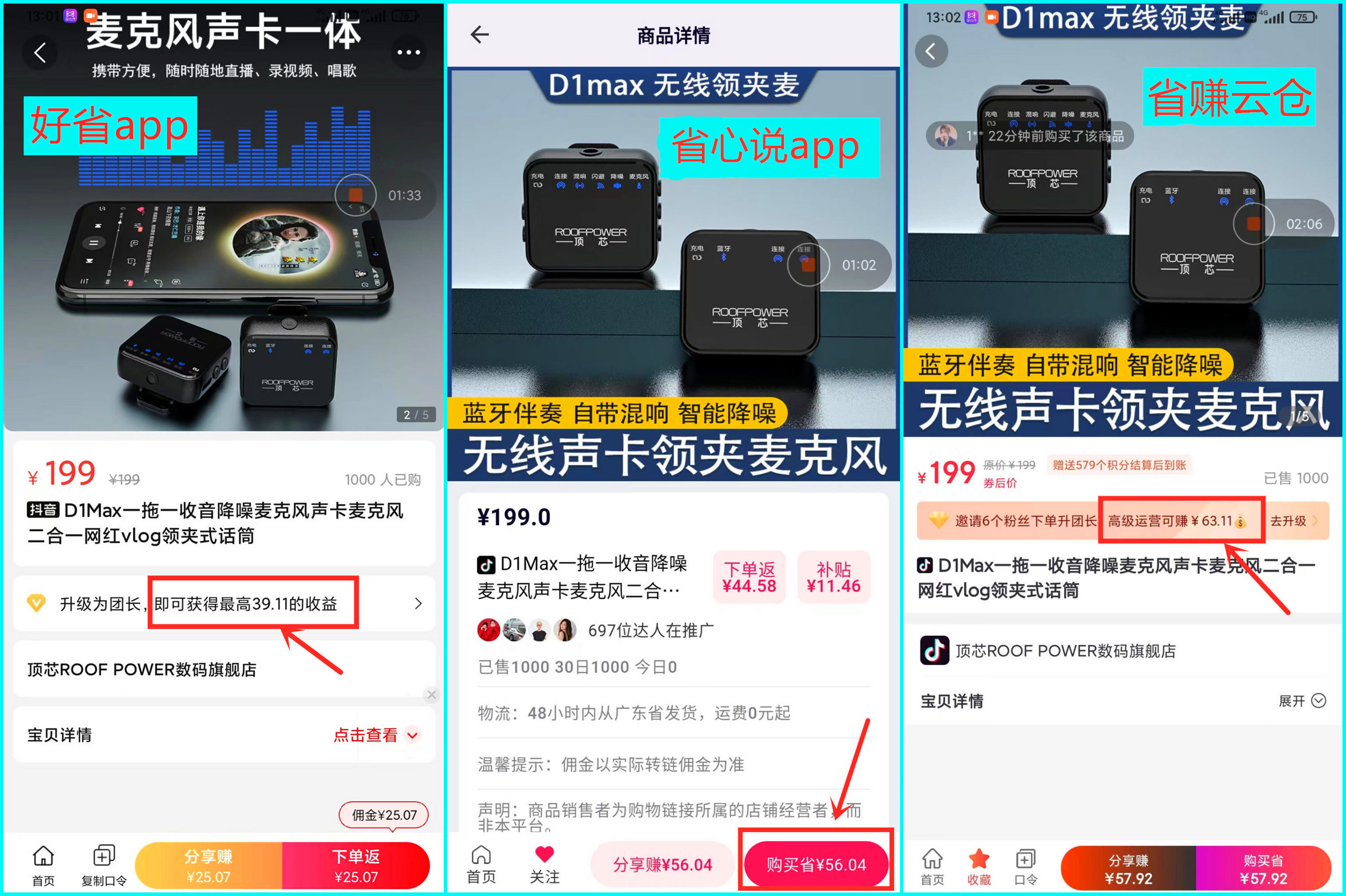 【图:领夹麦克风 最高可返利63元,远高于同行。】