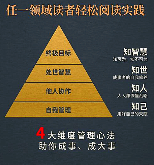 4、知慧--前三个方面从小处着手,第四个方面从大处着眼。到了智慧的层面,从更高的层次上,知可为,知不可为。一些简单有用的普世智慧。