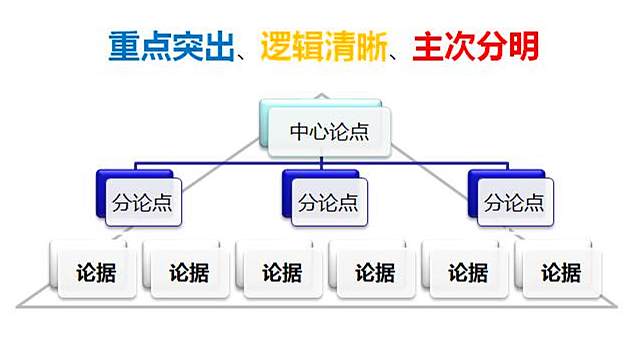 (3)MECE: 分组的MECE原则,保证划分后的各部分符合以下要求:各部分之间相互独立,相互排斥,没有重叠。所有部分完全穷尽,没有遗漏。 金字塔结构的严谨性:每一层次的论点都是下一层次论点的概括。次一个层次的乱点确实支撑上一个层次的论点。